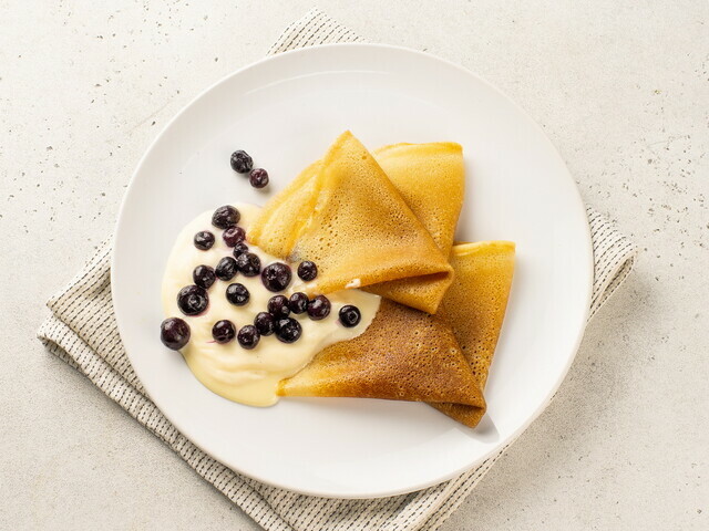 Блины, черника, пломбирный крем.