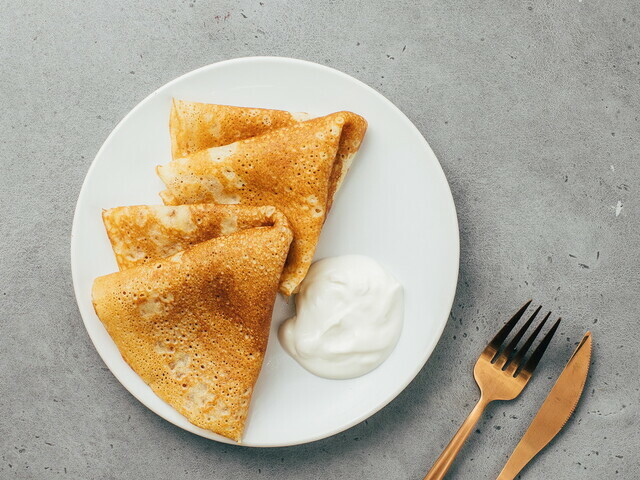 Блины, сметана.