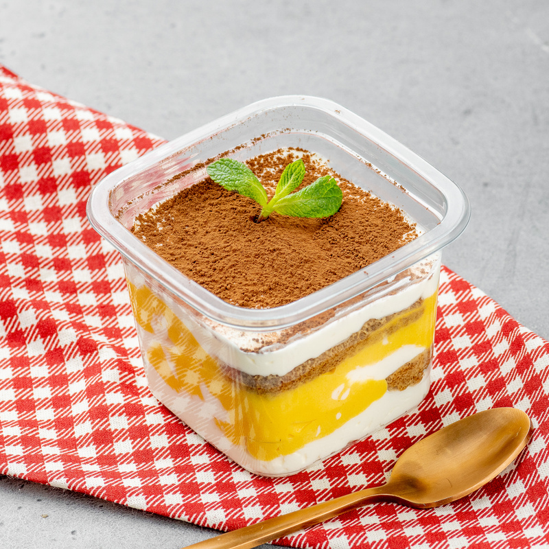 Сливочный сыр, печенье "Савоярди", кофе, мусс манго, какао.