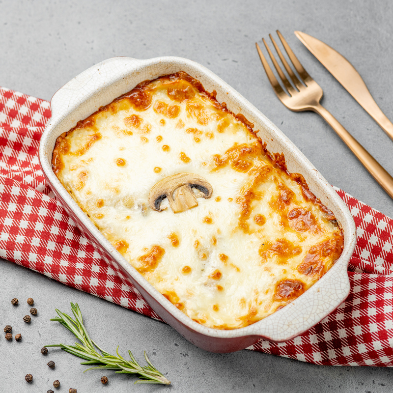 Индейка, шампиньоны, сыр "Пармезан", моцарелла, сливки, лук.