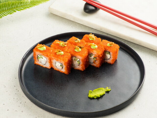Рис, краб, огурец, икра Масаго. 8 шт.