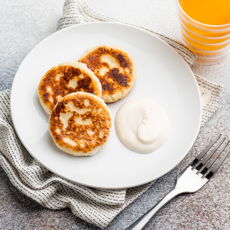 Творожные сырники, сметана