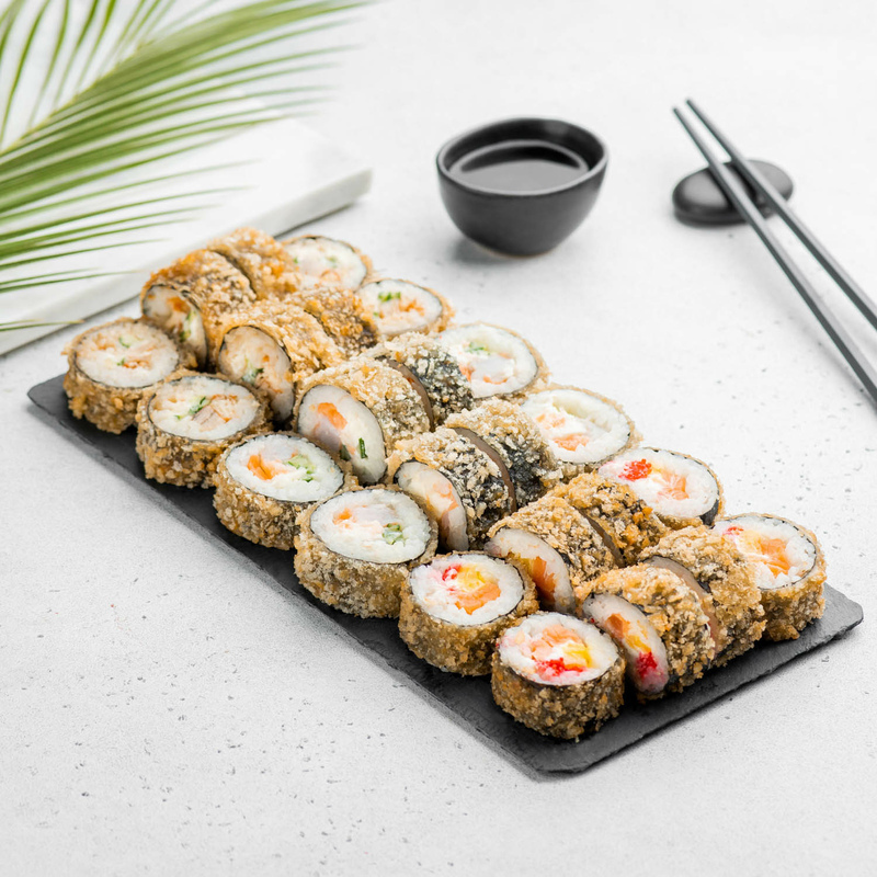 Темпура с лососем и креветкой, темпура с лососем, темпура с угрём и сыром