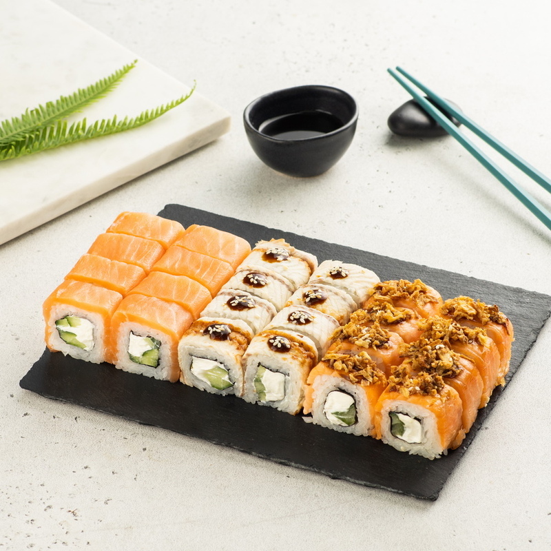 Нежная филадельфия с лососем, угорь филадельфия, филадельфия криспи
